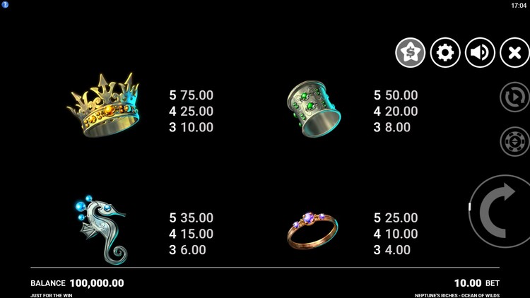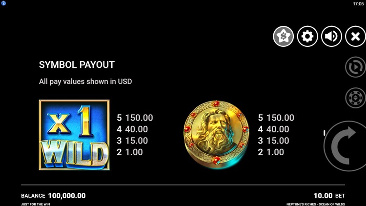 Таблица выплат Neptune’s Riches: Ocean Of Wilds