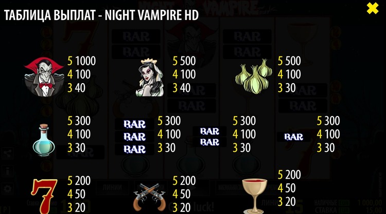 | Бокал, Пистолеты, Семерка | 20 | 50 | 200 |