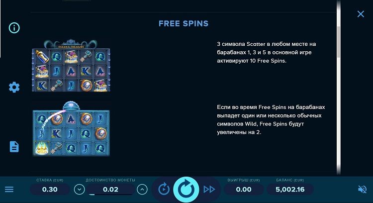 Таблица выплат Ocean’s Treasure
