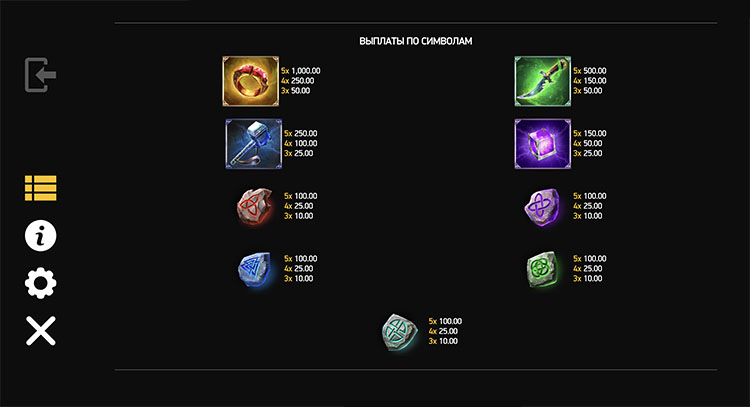 Таблица выплат Odin’s Tree