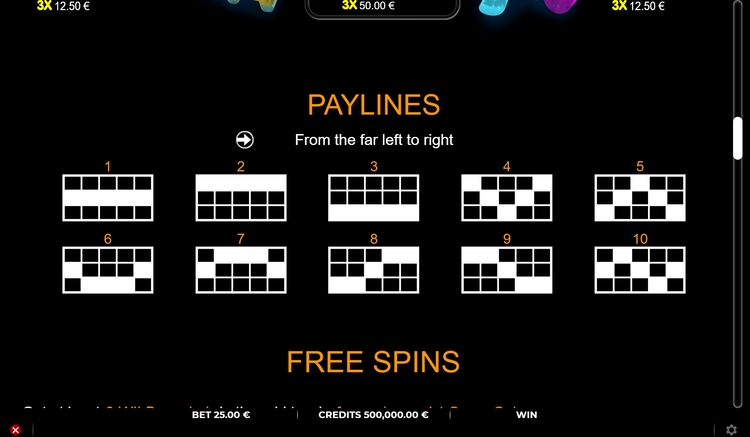 | 10, J, Q | - | 12,5 | 62,5 | 250 |