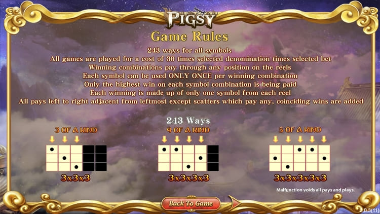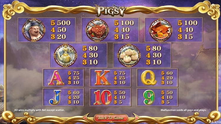Таблица выплат Pigsy