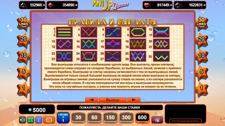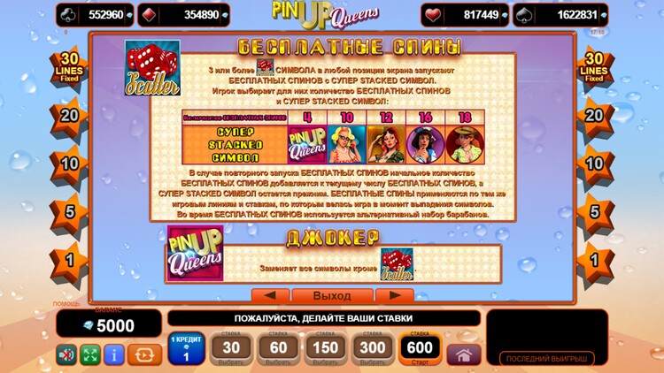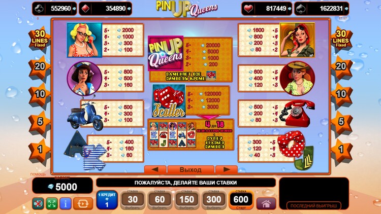 Таблица выплат Pin Up Queens