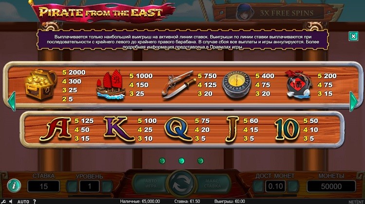 | Девушка-пират (Scatter) | 2 | 4 | 15 | 100 |
