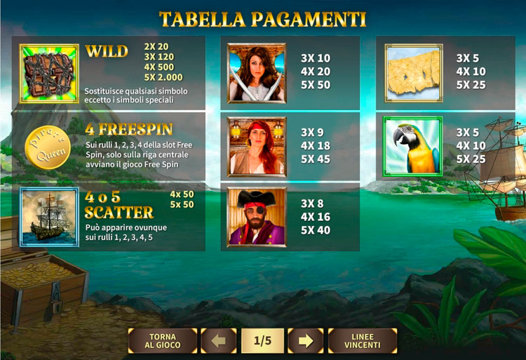 Таблица выплат Pirate Queens