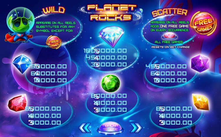 Таблица выплат Planet Rocks