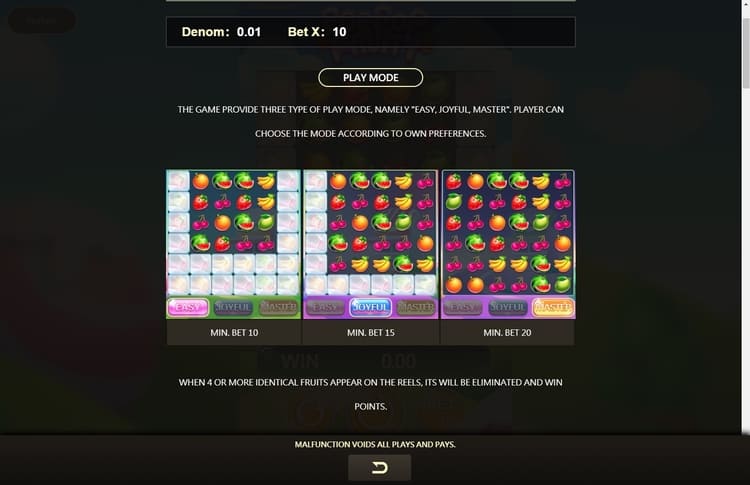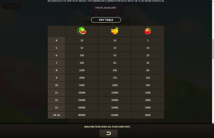 Таблица выплат Pop Pop Fruity