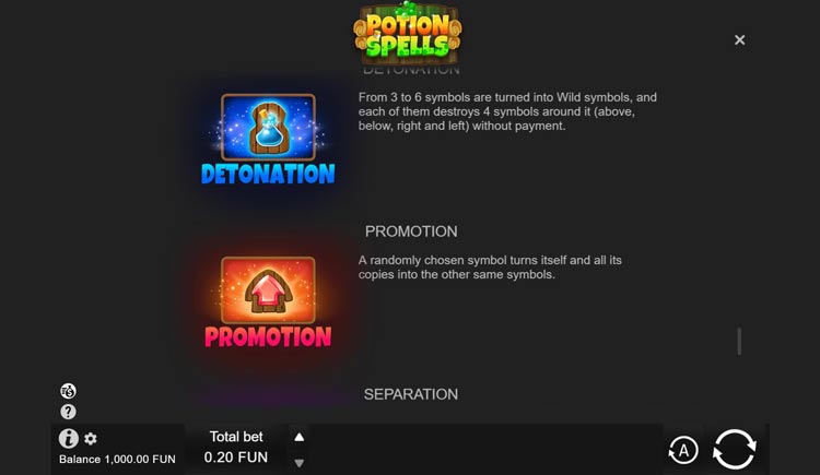 Таблица выплат Potion Spells
