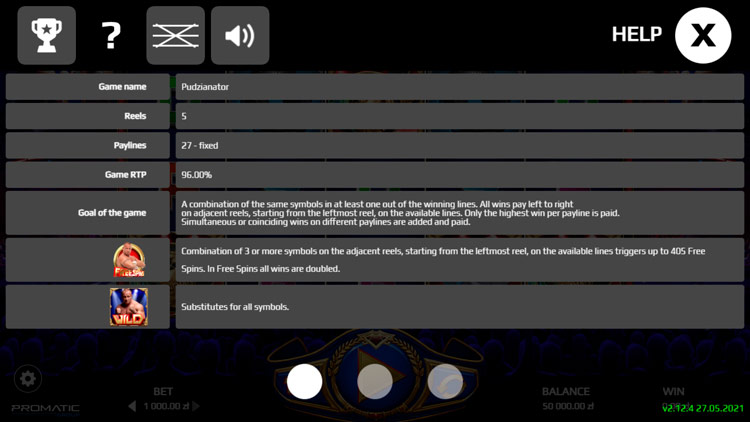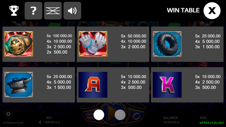 Таблица выплат Pudzianator