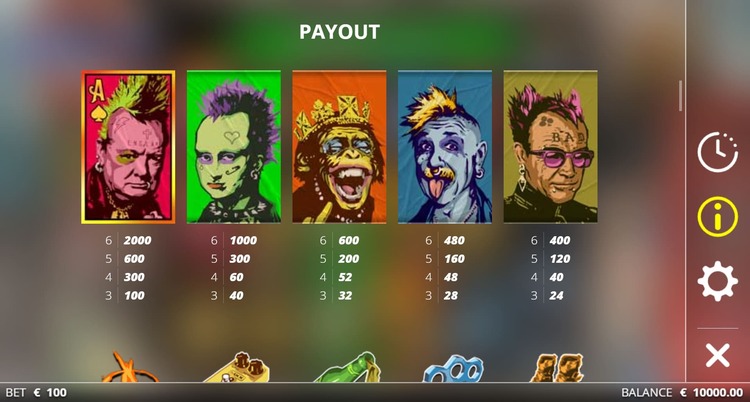 Таблица выплат Punk Rocker