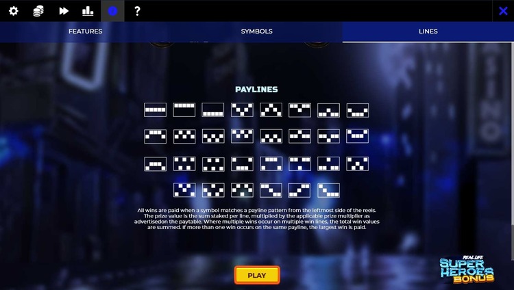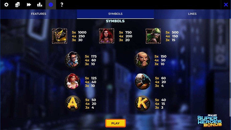 Таблица выплат Real Life Superheroes Bonus