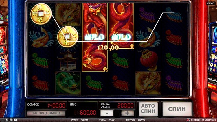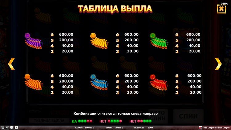 Таблица выплат Red Dragon vs Blue Dragon