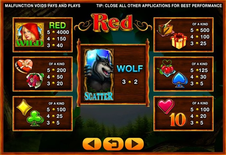 Таблица выплат Red