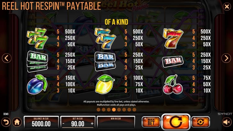 | Free Spins (Scatter) | 90 | 450 | 900 | 4 500 |