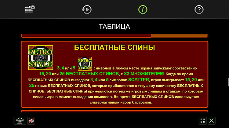 Таблица выплат Retro Style