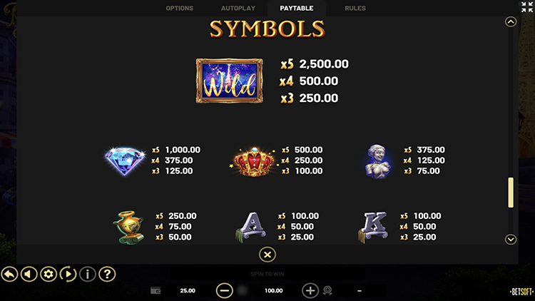 | J, Q, K, A | 25 | 0,50 | 100 |