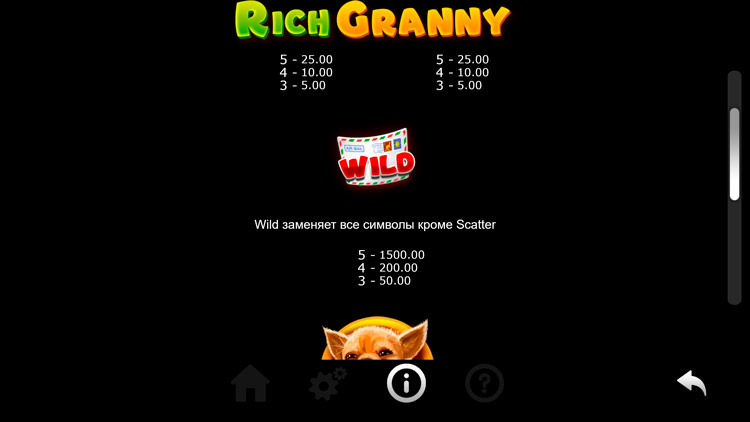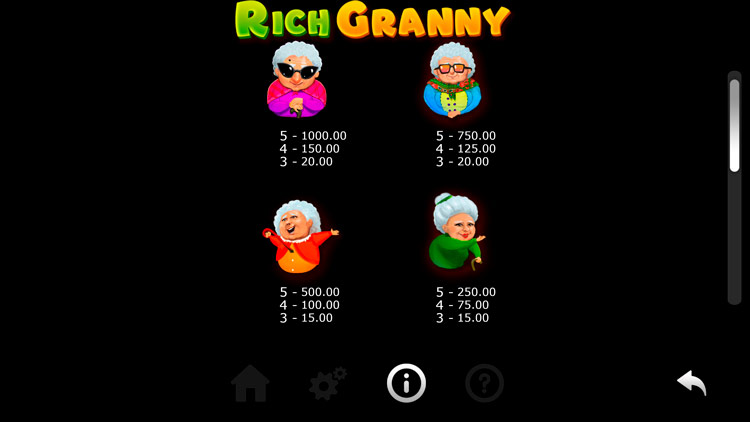 Таблица выплат Rich Granny