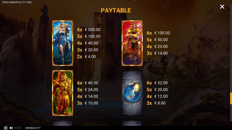 Таблица выплат Rosh Immortality Cube