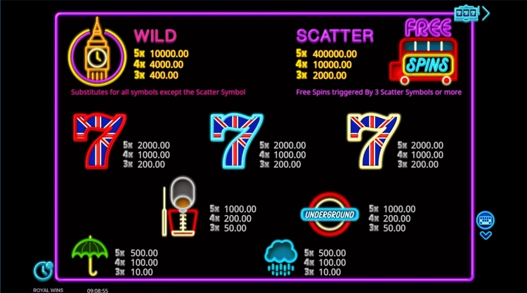 Таблица выплат Royal Wins
