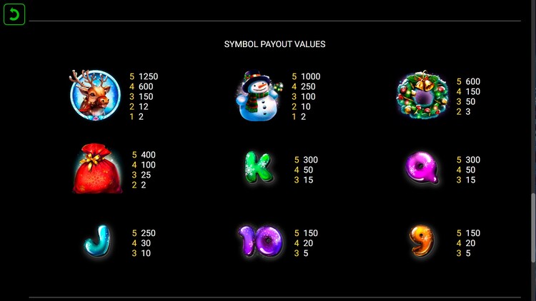 Таблица выплат Santa’s Bag