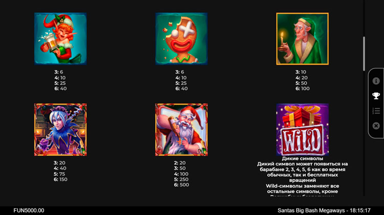 Таблица выплат Santa’s Big Bash Megaways