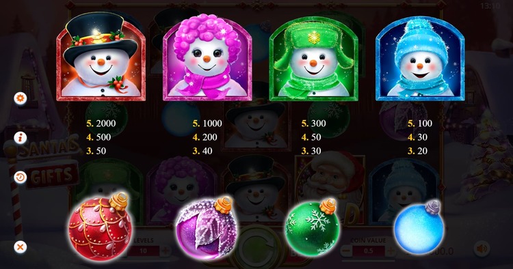 Таблица выплат Santa’s Gifts