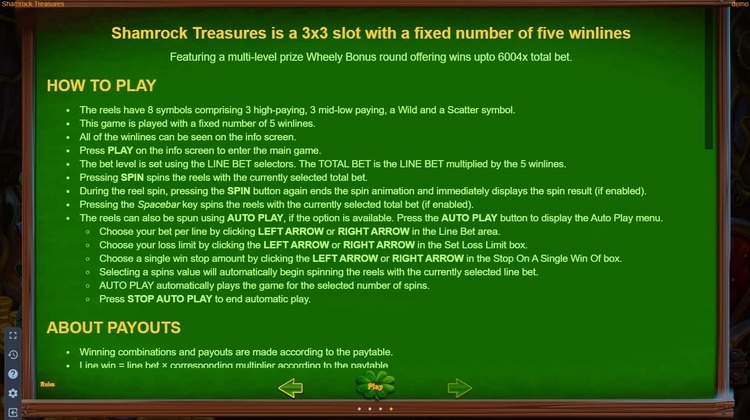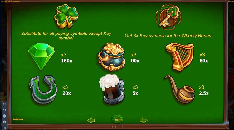 Таблица выплат Shamrock Treasures