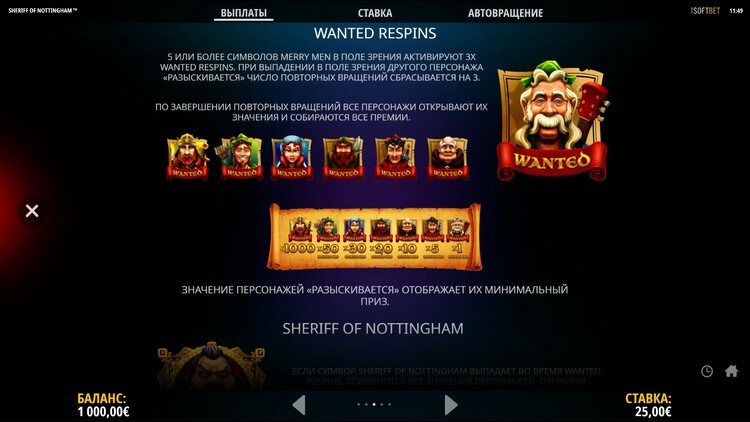 Таблица выплат Sheriff Of Nottingham