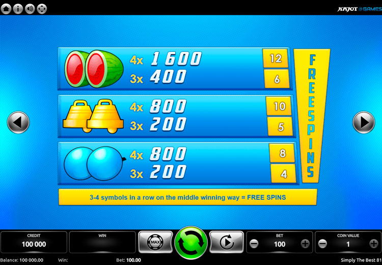 | Апельсин, Слива, Доллар, Колокол | 200 | 800 |