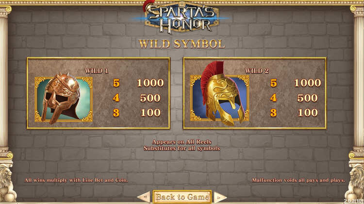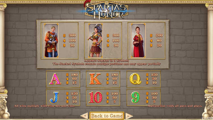 Таблица выплат Sparta’s Honor