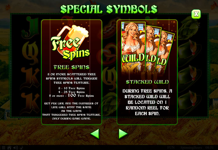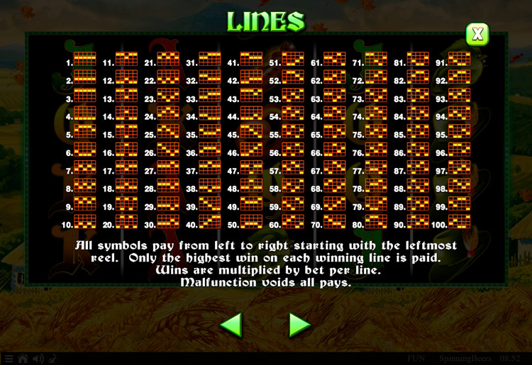 Таблица выплат Spinning Beers