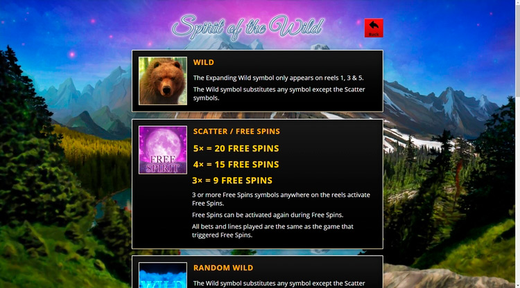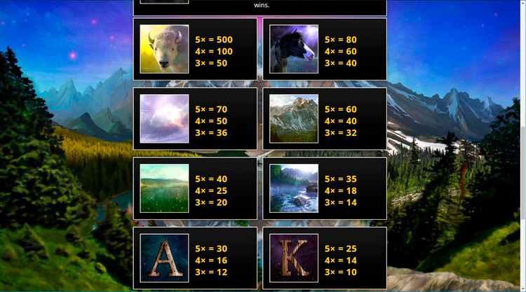 Таблица выплат Spirit of the Wild