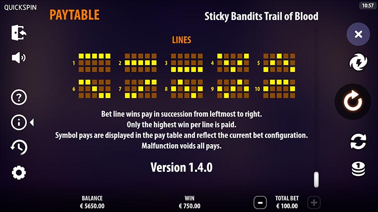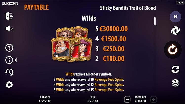 Таблица выплат Sticky Bandits: Trail of Blood