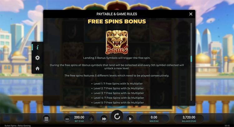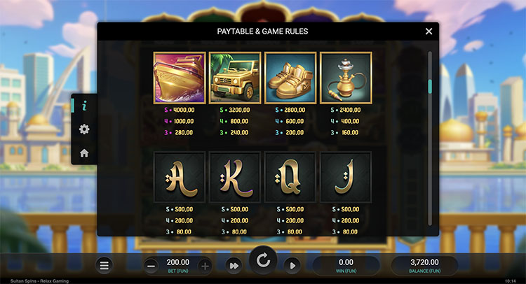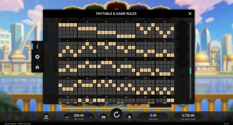 Таблица выплат Sultan Spins
