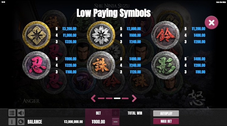 Таблица выплат Suzu She Ninja