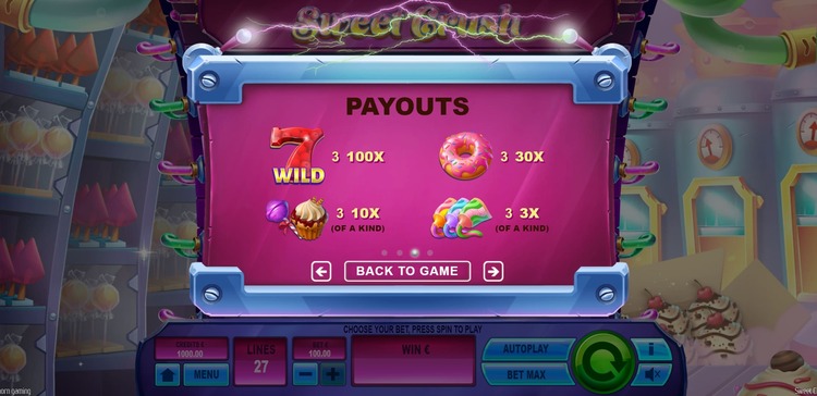 Таблица выплат Sweet Crush