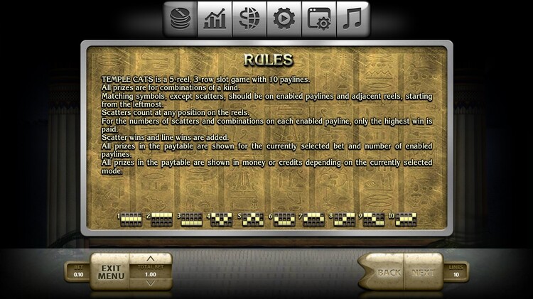 Таблица выплат Temple Cats