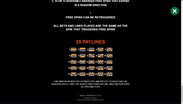 Таблица выплат Temple of Medusa