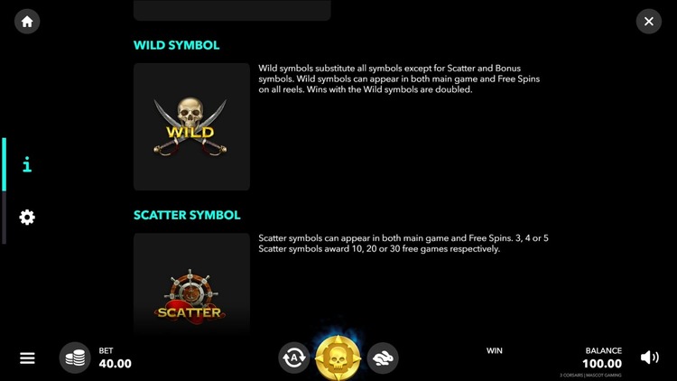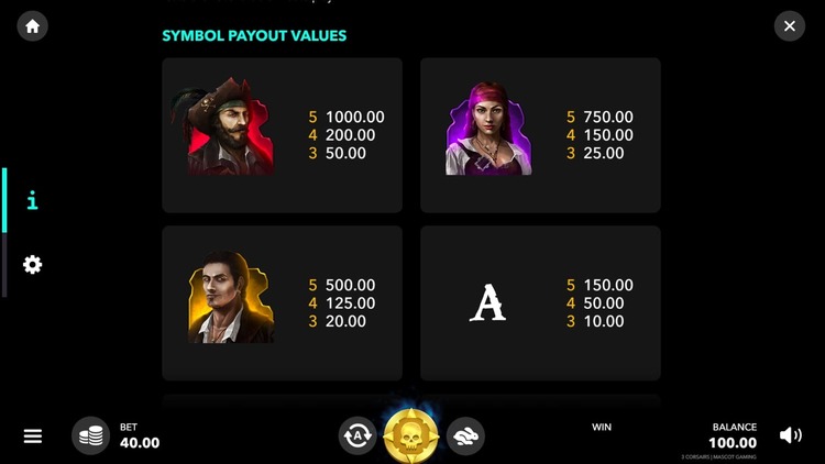Таблица выплат Three Corsairs