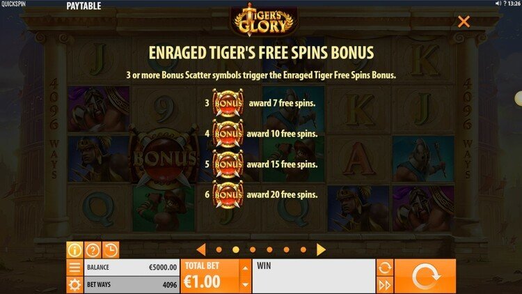 Таблица выплат Tiger’s Glory