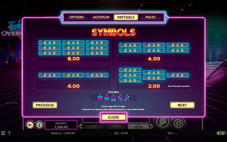 Таблица выплат Total Overdrive