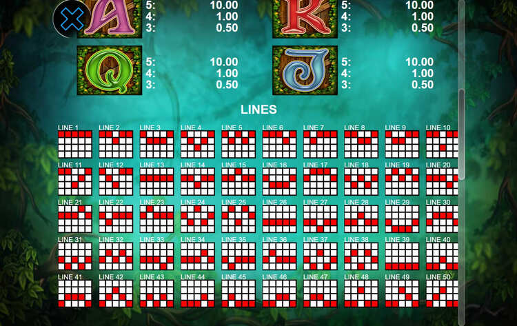 | J, Q, K, A | 0,5 | 1 | 10 |