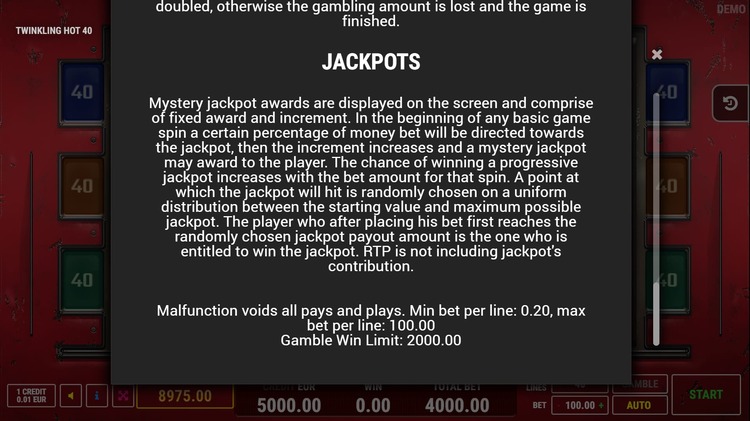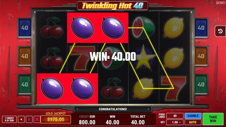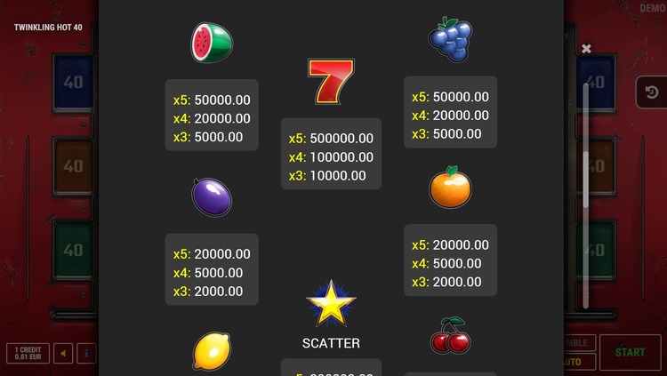 Таблица выплат Twinkling Hot 40