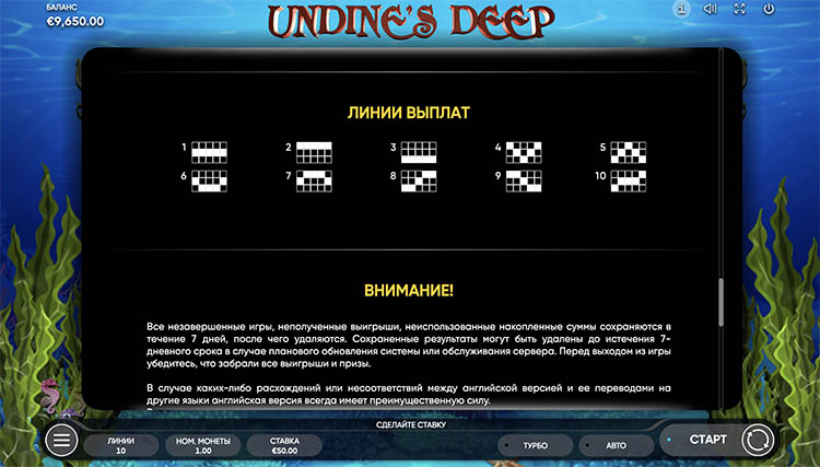 Таблица выплат Undine’s Deep