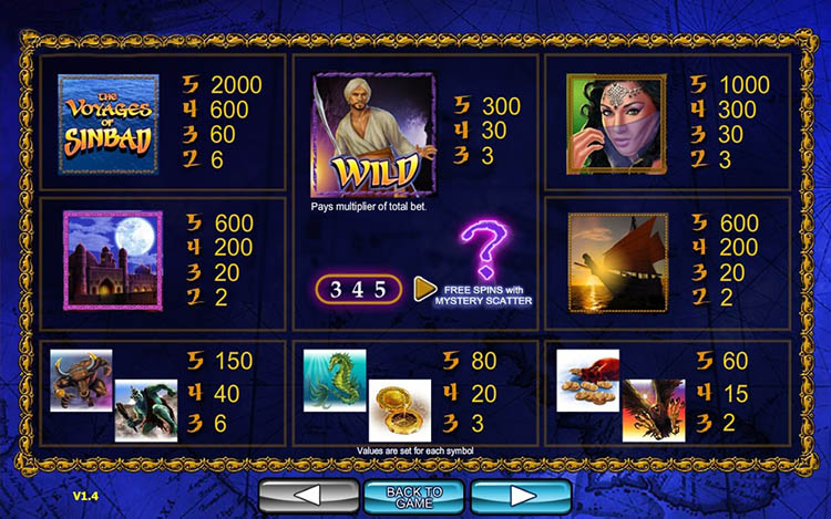 Таблица выплат The Voyages Of Sinbad