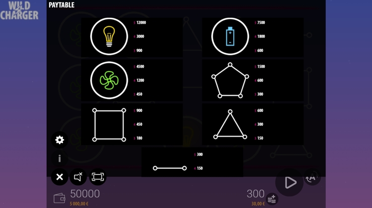 Таблица выплат Wild Charger