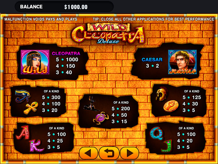 | Клеопатра (Wild) | 40 | 150 | 1 000 |