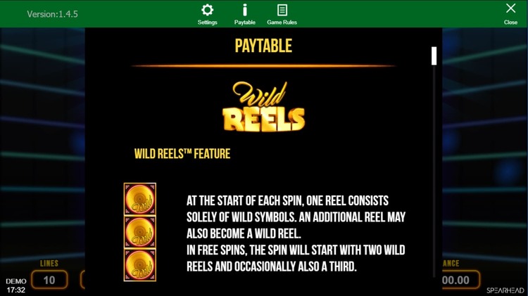 Таблица выплат Wild Reels