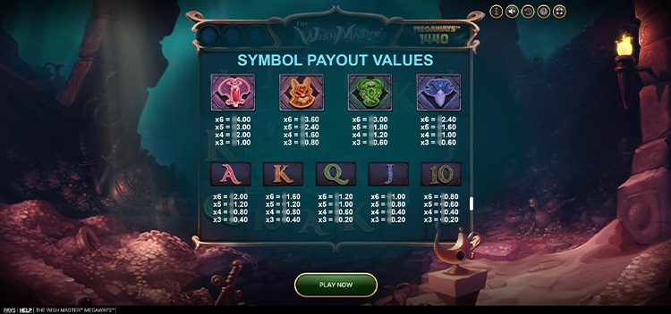 Таблица выплат The Wish Master Megaways