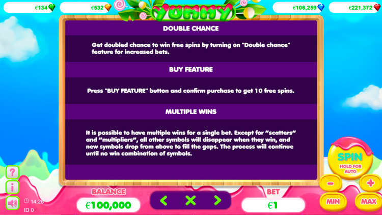 Таблица выплат Yummy: Buy Feature